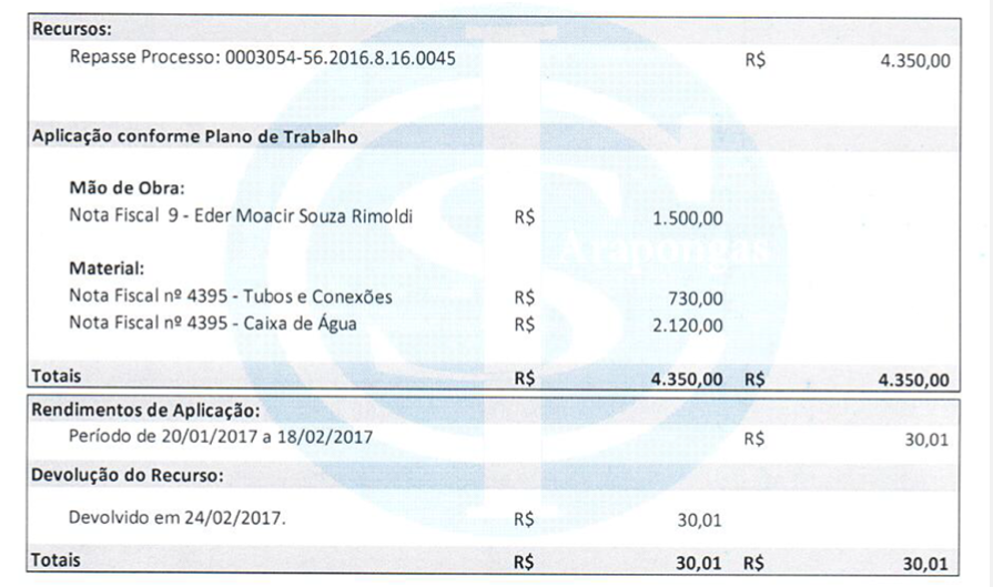Prestação de Contas “Caixa D’Água